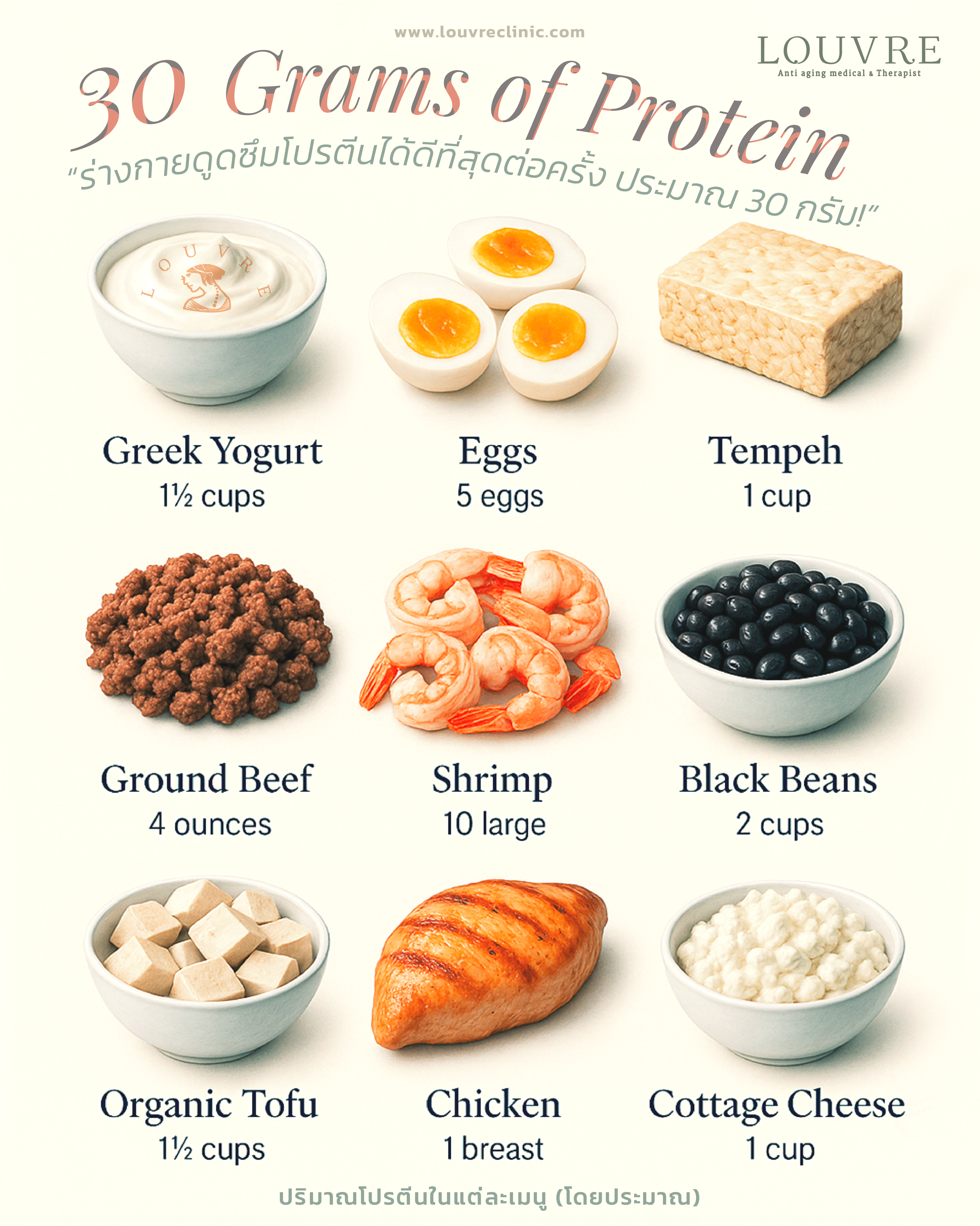 ดังนั้น 30 กรัมต่อมื้อ คือ “จุดพอดี” ที่ร่างกาย