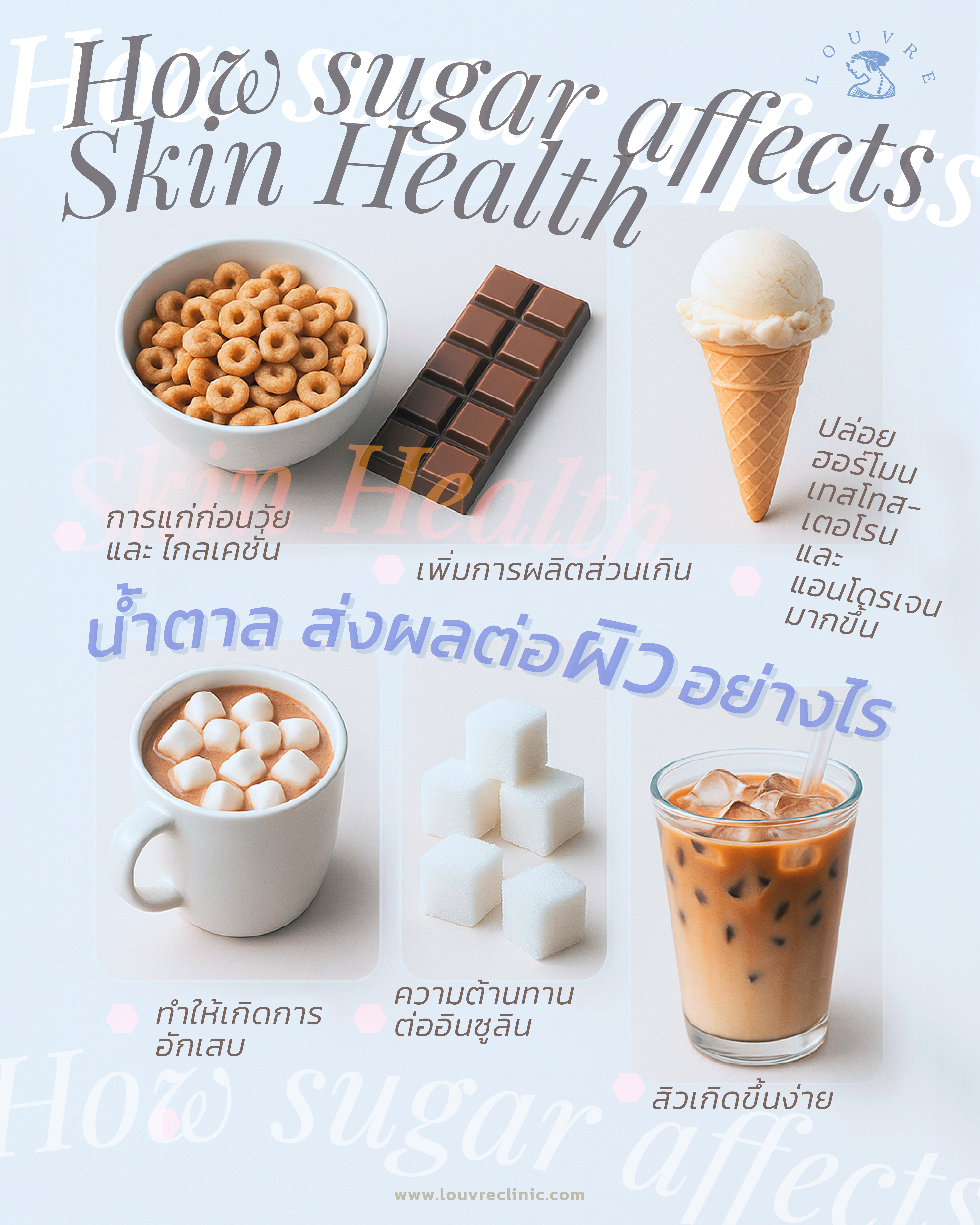 o เมื่อร่างกายรับน้ำตาลมากเกินไป อินซูลินทำงานผิดปกติ กระตุ้นสิวให้เกิดบ่อยและรักษายาก